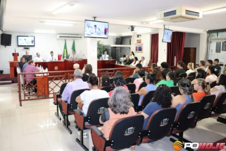 Trinta e duas Assistentes de Educação ocupantes de cargo efetivo da rede municipal de ensino em Presidente Olegário estiveram na Câmara Municipal durante a primeira reunião do ano Legislativo na última terça-feira (3).