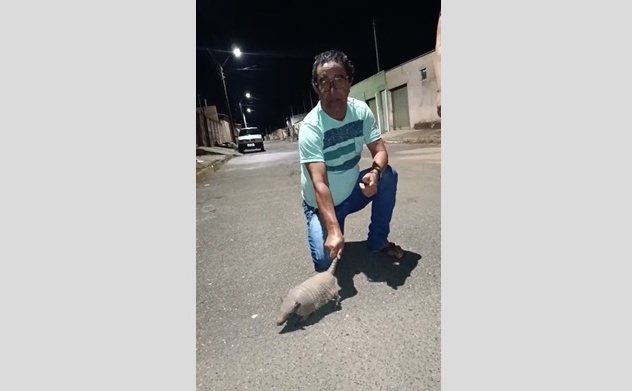 Morador flagra tatu passeando no bairro Saltador