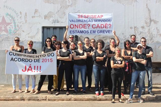 Servidores em greve fazem protesto em frente ao presÃdio de Presidente Olegário