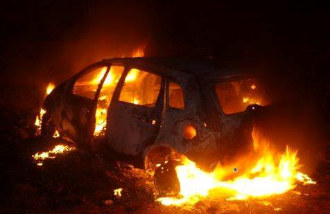 Condutora bate em canaleta carro capota e pega fogo