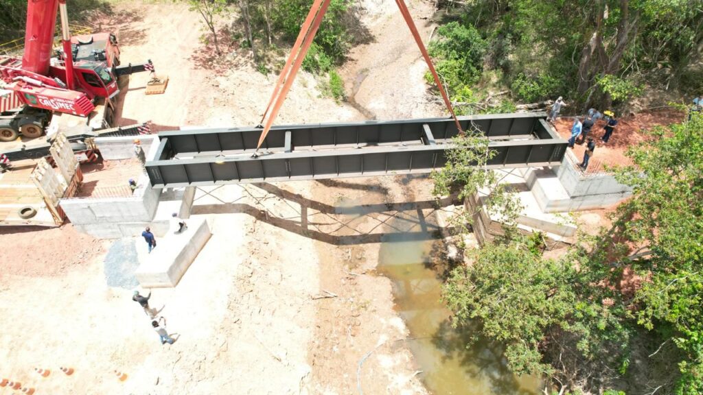 Região de Andrequice: Prefeitura coloca vigas de aço em ponte sobre o Córrego da Tapera