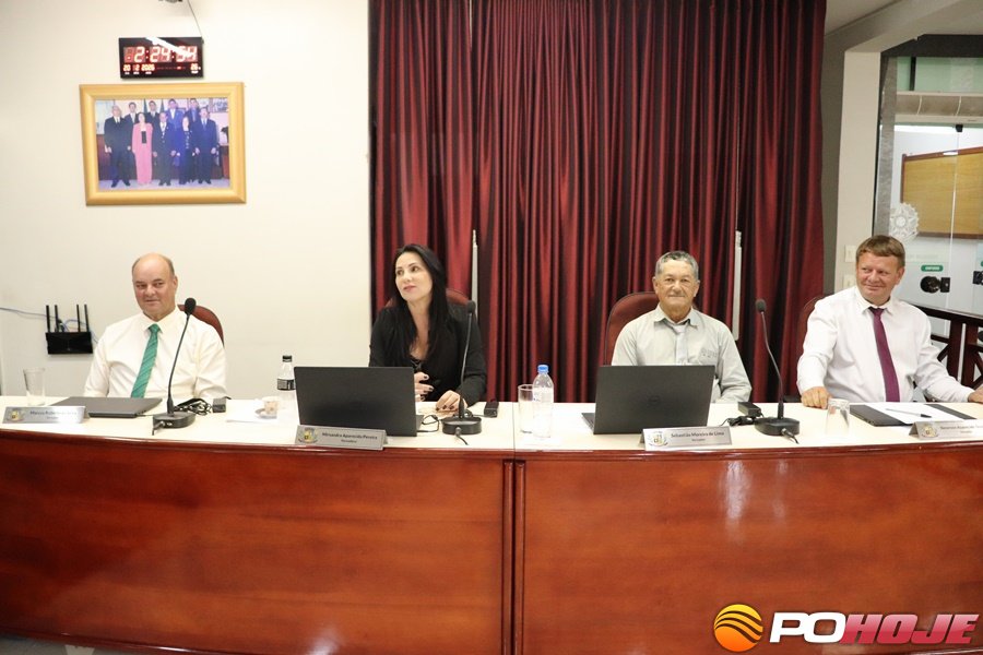 A reunião foi presidida pelo vereador Pedro Osvando de Castro e contou com a presença de todos os parlamentares, do prefeito em exercício Júlio Reis, presidente do Sindicato dos Trabalhadores no Serviço Público Municipal de Presidente Olegário (Sintrasp), Lara Cristina, servidores do Legislativo e populares.