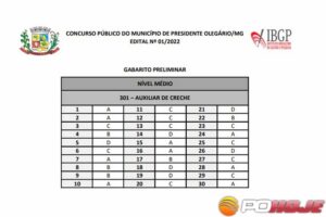 Foi divulgado o gabarito preliminar do concurso público para área da Educação, que busca preencher 76 vagas para diversos cargos de níveis médio e superior na Prefeitura de Presidente Olegário.