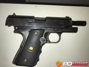 Os policiais o revistaram e não encontraram nada de ilícito com o rapaz e ele negou que tinha materiais ilícitos. Durante busca na residência do jovem, a PM encontrou uma pistola pt 380 imbel escondida dentro de uma fornalha, 34 munições de diversos calibres, um carregador, empunhadora de revolver e 2 blisters, o material estava em uma sacola plástica próximo ao muro da casa.