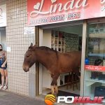 Uma mula foi flagrada passeando em uma loja na Rua Felisberto Fonseca no centro de Presidente Olegário na tarde desta quarta-feira (15).
