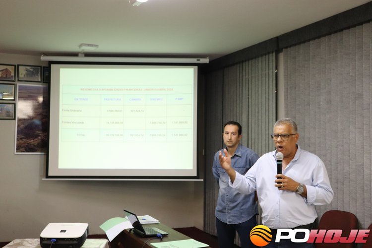 O contador do município Renato José Braga Pacheco e o assessor da empresa Mercury, Júnior Franco, que presta serviços a Prefeitura fizeram a prestação de contas aos vereadores e aos presentes.