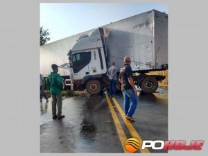O acidente ocorreu próximo ao Posto Lagomar. A carreta vazia seguia sentido Presidente Olegário quando o condutor perdeu a direção e fez um “L” ficando atravessada na pista.