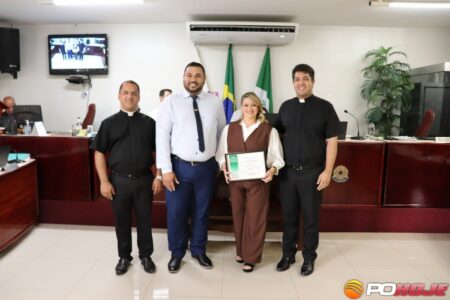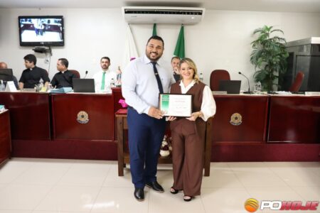 O vice-presidente da Câmara, vereador Tyanan Maciel entregou Moção de Aplauso para a fisioterapeuta da Secretaria Municipal de Saúde, Daysiane Soares Demarque, pelos serviços prestados em 10 comunidades rurais do município de Presidente Olegário.